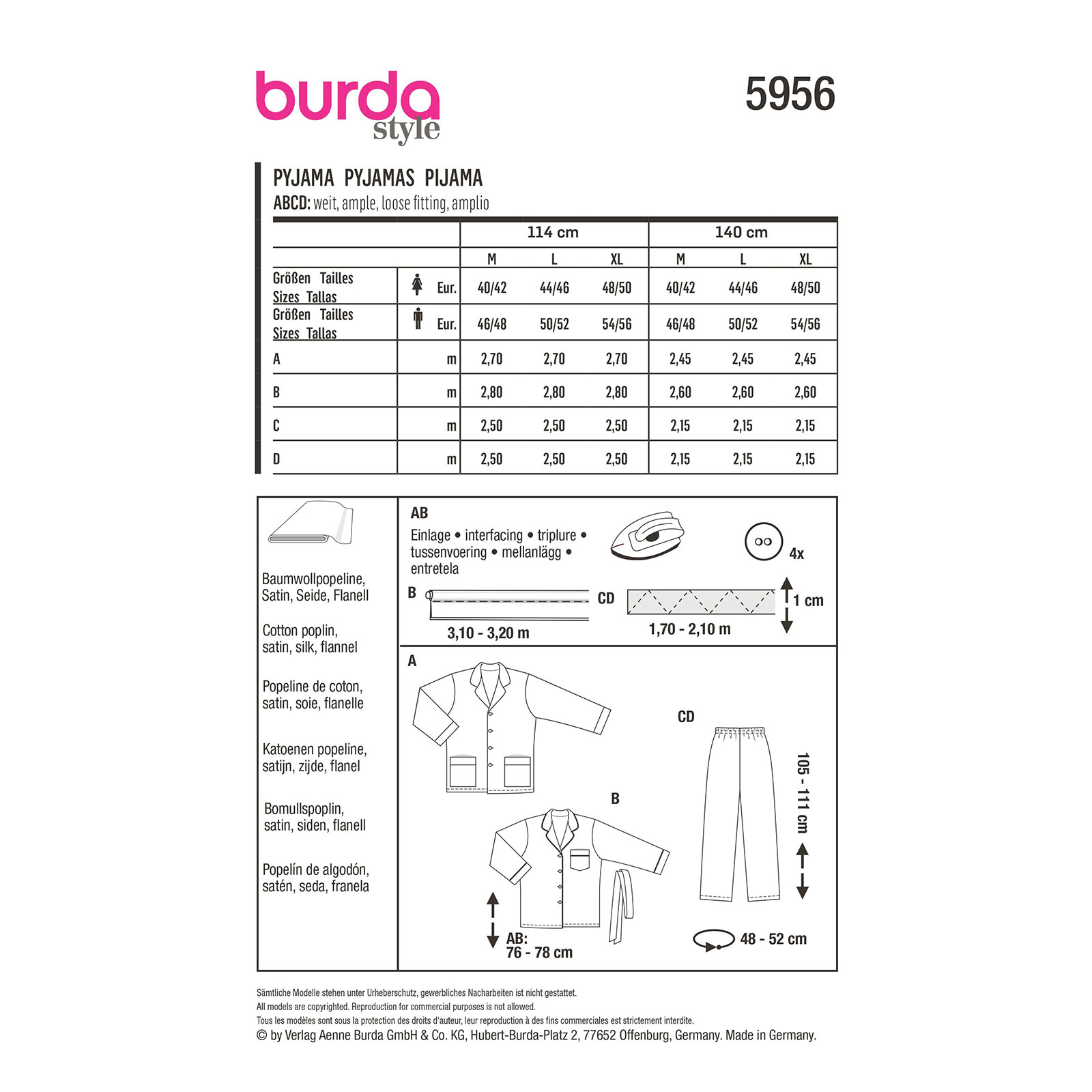 Burda Patroon 5956 – Pyjama Heren en Dames