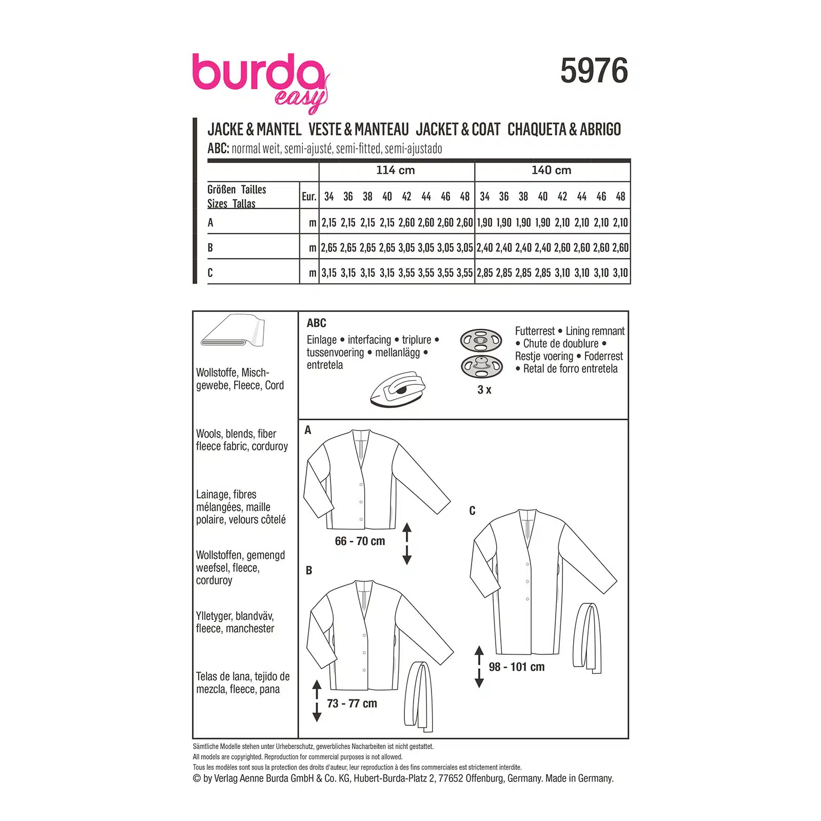 Burda Patroon 5976 – Jas in Variaties