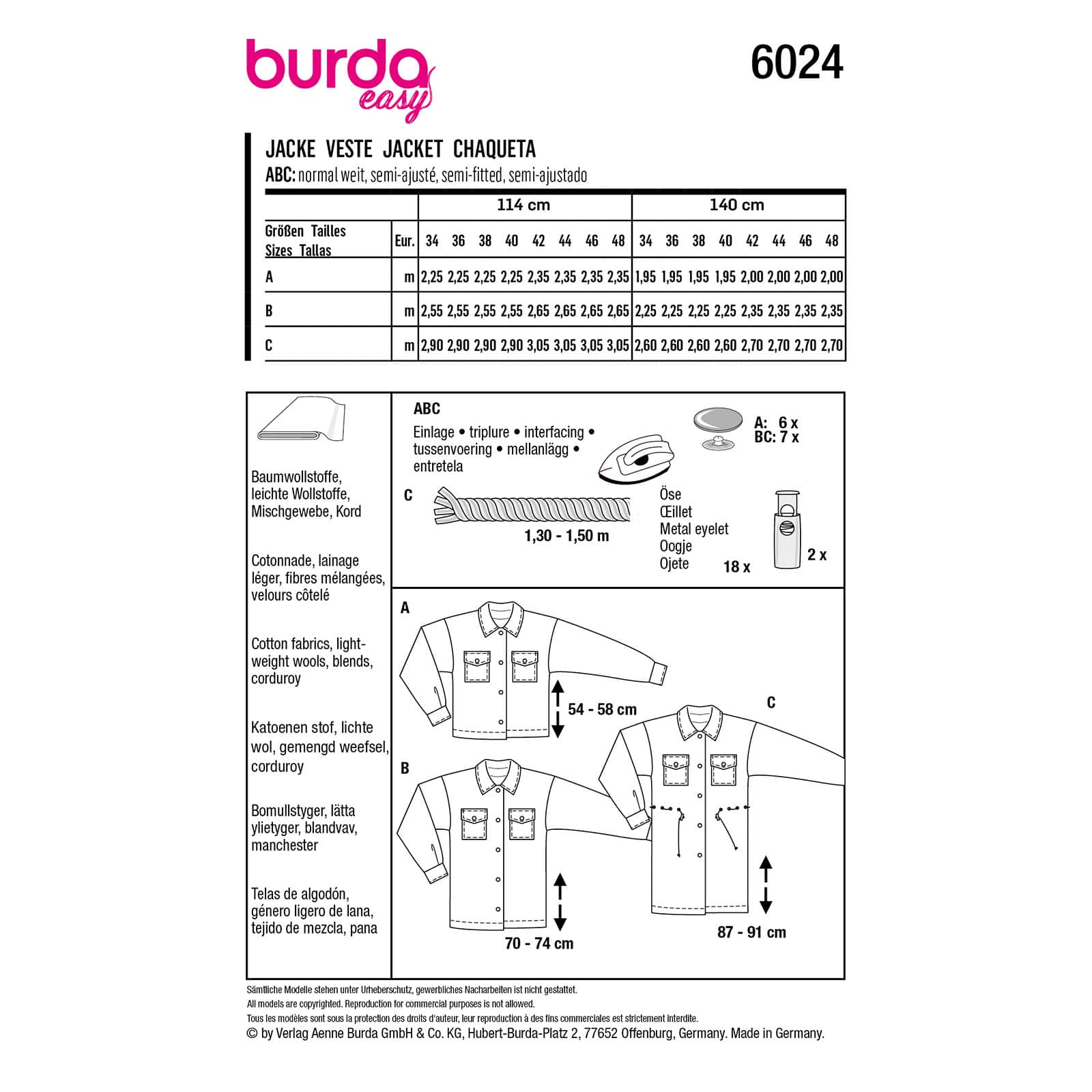 Burda Patroon 6024 – Jasje in Variaties