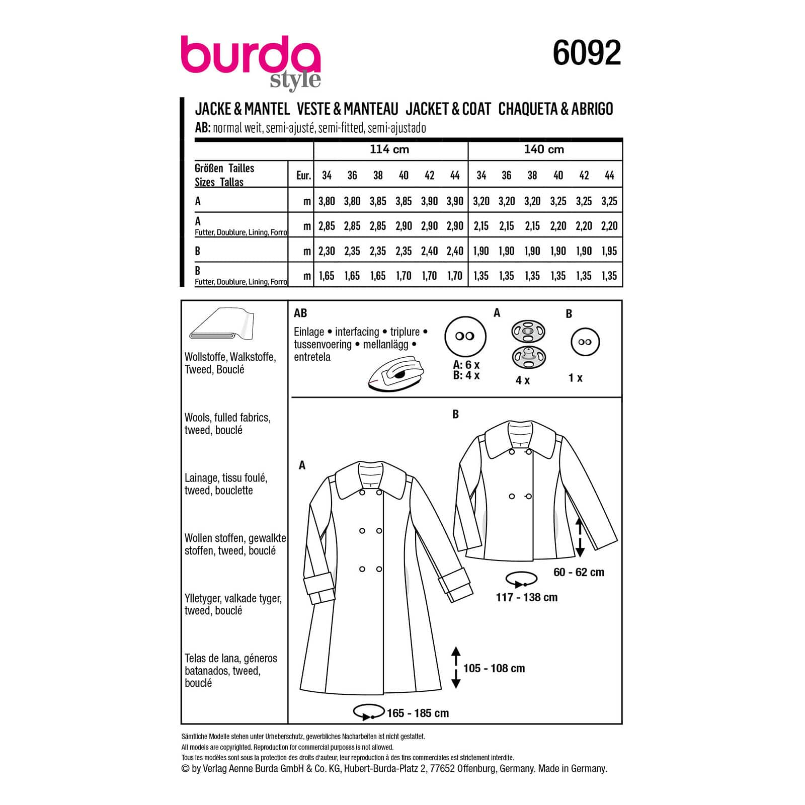Burda Patroon 6092 – Jas en Mantel