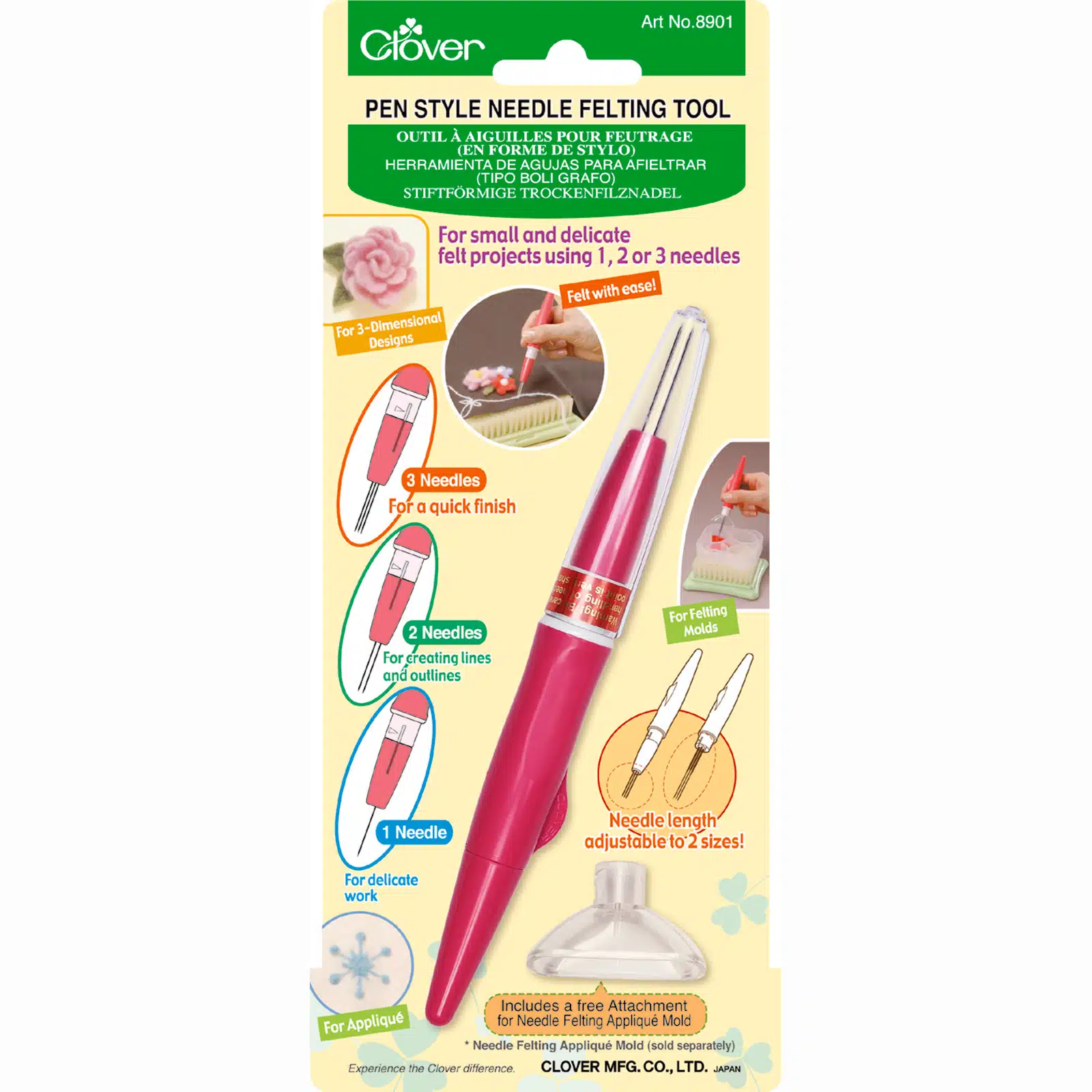 Clover Vilt Naald met 3 Naalden